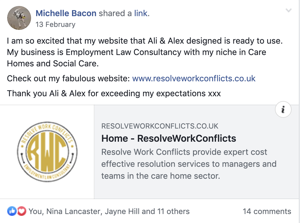 I am very pleased with my website and everyone who looks at it always comments on how good it is. Ali and Alex were really supportive and gave me lots of great advice, things that I would have never thought of and it has really helped. Its early days but I am beginning to get leads and they have set it up so it will link to my Facebook advertising campaigns, so I can only see it getting better and better.